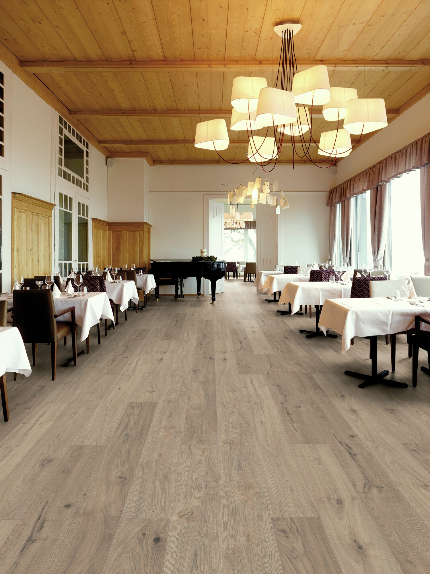 The GRAND SELECTION ORIGIN is so well modelled on its template of solid and rustic real wood, that hardly any discrepancies can be spotted with the naked eye. The high-quality line offers attractive French oak decors and a wide choice of shades. The laminate is water-resistant and, thanks to ‘aquastop’ technology, is also suitable for damp rooms. The 14 mm thick and 2025 mm long planks in real-wood look have an extremely natural appearance. The 4-sided chamfer underlines the plank character and provides a homely ambience. The high abrasion class AC5/33 makes the laminate particularly resistant. The laminate floor is antistatic and particularly easy to lay thanks to its 5G click connection. Matching skirtings and floor profiles for the GRAND SELECTION ORIGIN line are available on request.